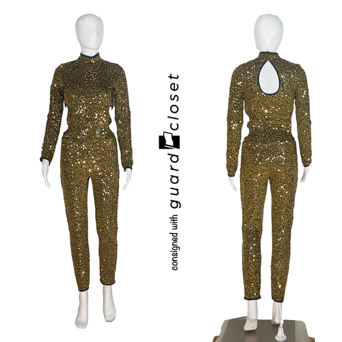 12 Gold Long Sleeve Unitard with Side Cutouts and Keyhole Back