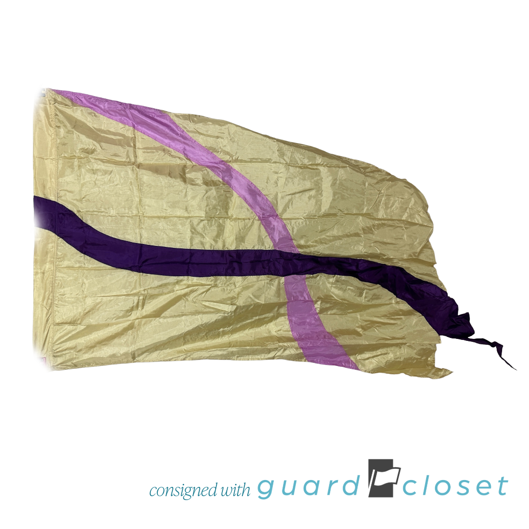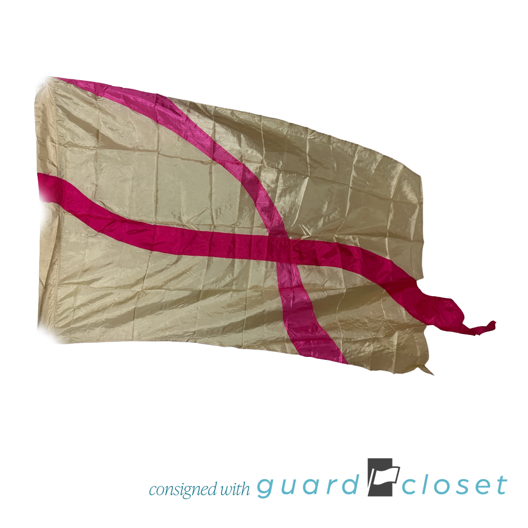 Item description: 10 cream-colored silks with pink ribbons, 1 soloist flag with purple ribbon