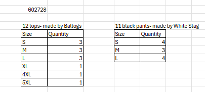 Item description: 12 Purple Blue Aqua Long Sleeve Tops and 11 Black Pants
