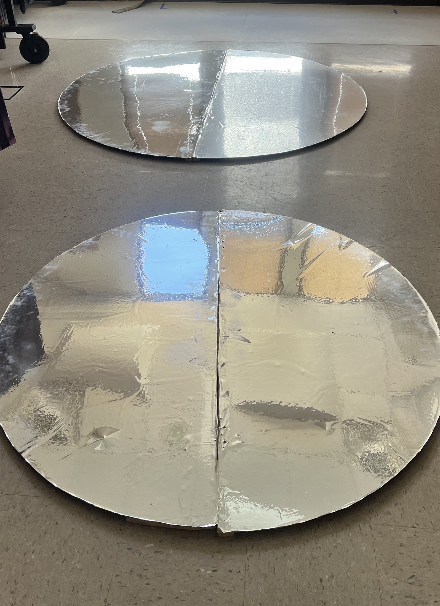 Item description: 1 big reflective circle “mirror” 80" diameter, 1 small reflective circle “mirror” 60" diameter