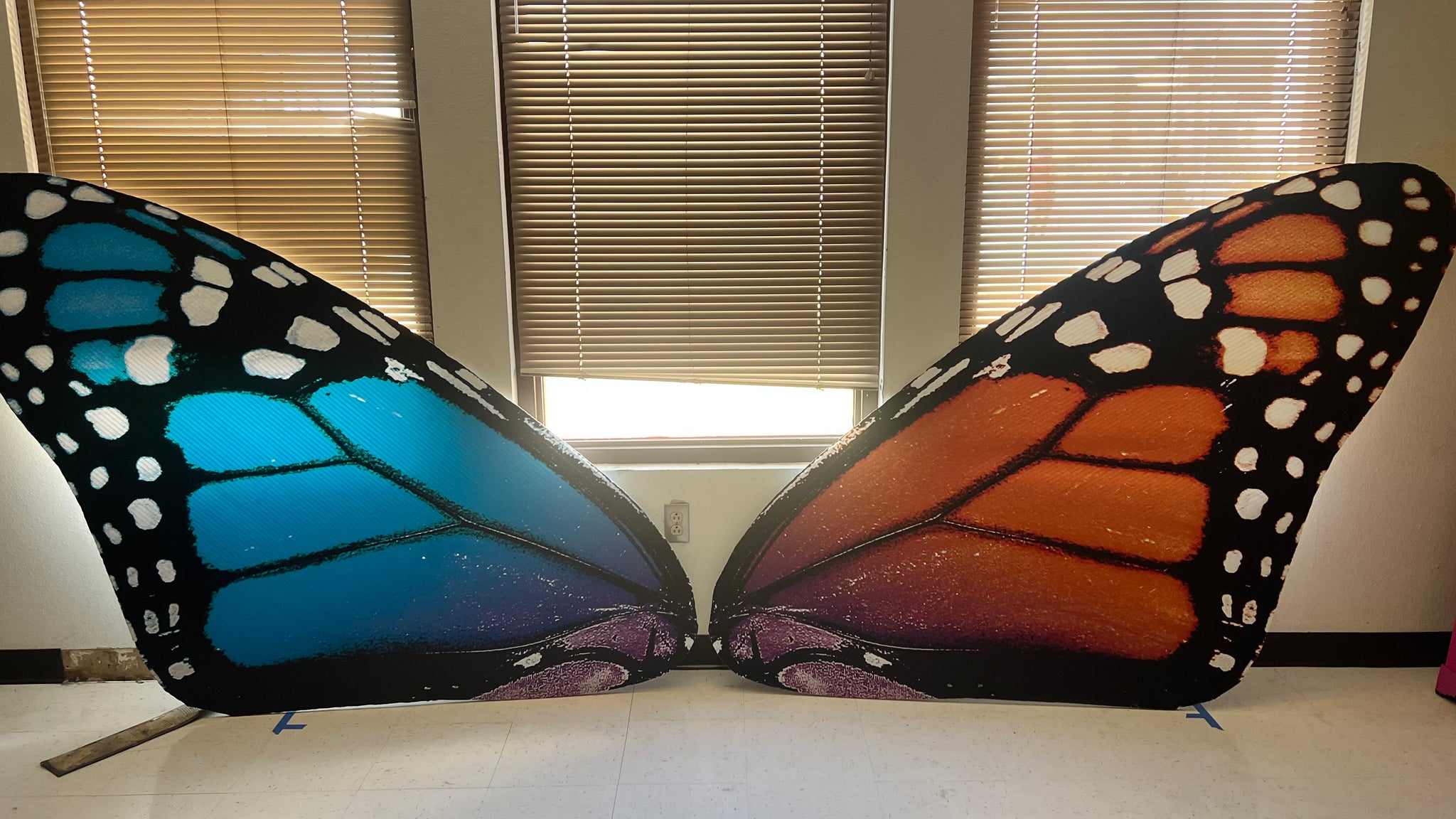 Item description: 20 multicolor butterfly wing field props- 58 inches tall, 76 inches long, 1 inch width - made of plastic/cardstock