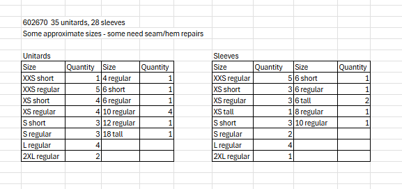Item description: 35 Gray White Green Blue Purple Sleeveless Unitards With 28 Coordinating Sleeves - some seam/hem repairs needed