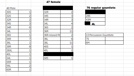 87 blue/gold filigree jackets + 89 pairs black/gold gauntlets