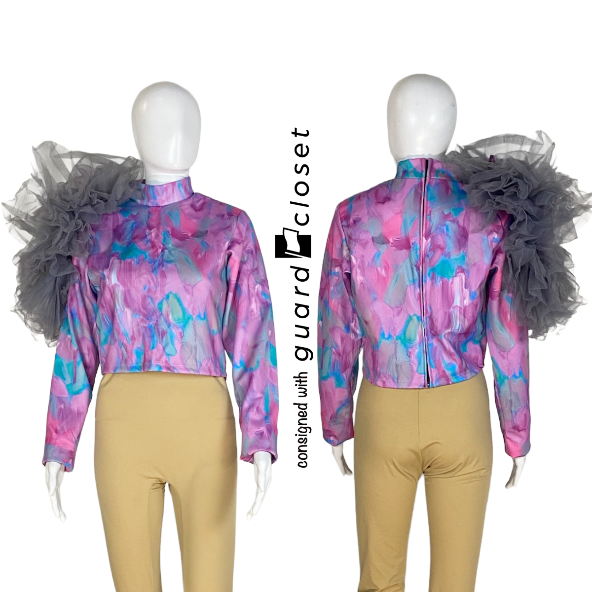 Item description: 92 Total Purple Pink Dust Bunny Performance Tops + 96 Removable Shoulder Tulle Dust Puffs (attach with snaps) + 34 Bunny Faux Fur Tails (not all tops have a snap for a bunny tail)
