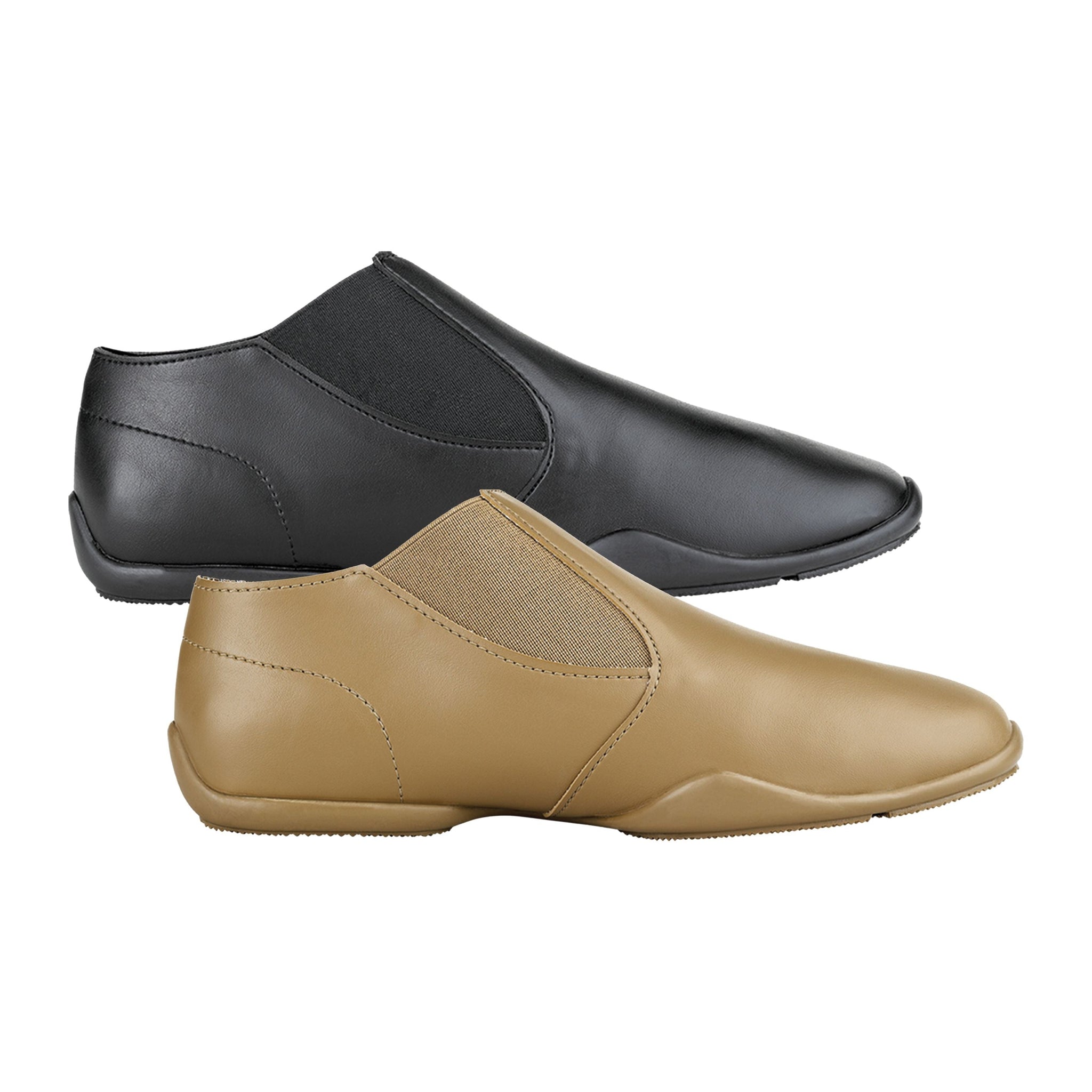 - Soft vinyl vamp, upper & heel cup with elastic gore inserts and arch protected no-mark rubber split sole.